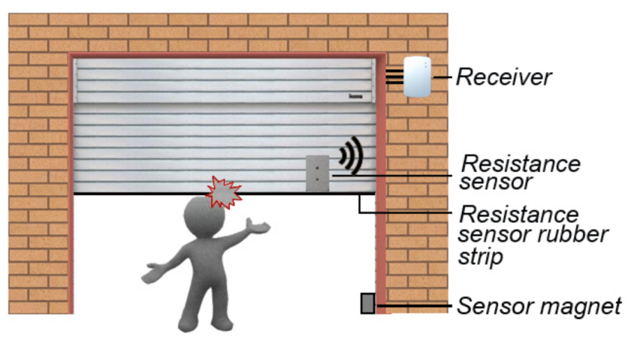 1. La puerta enrollable se detendrá inmediatamente si la tira de goma del sensor de resistencia obtiene resistencia.