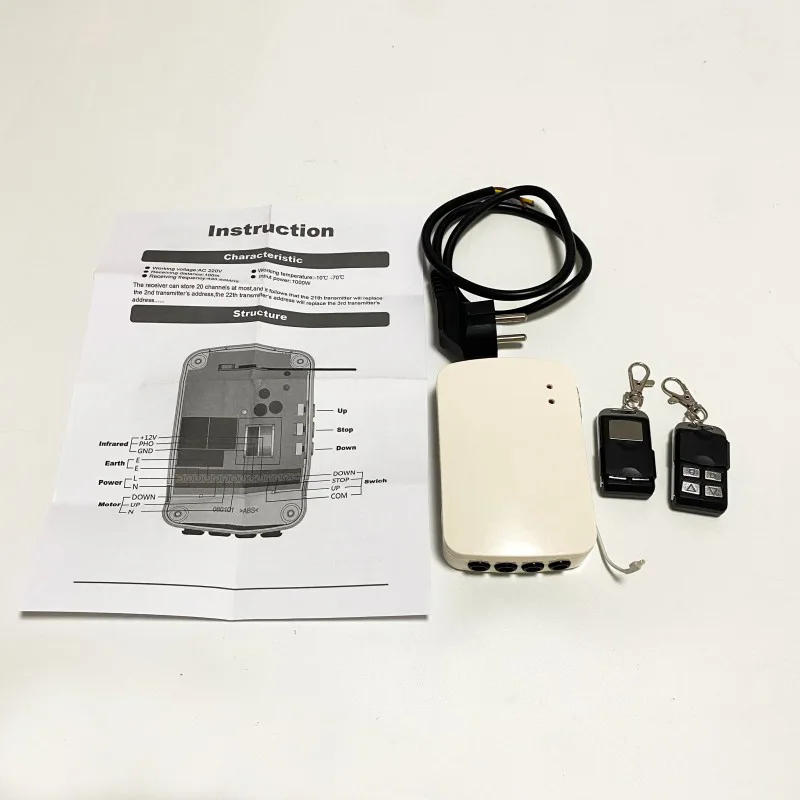 Cuando la puerta enrollable corre hacia abajo, se detendrá si el interruptor fotoeléctrico detecta obstáculos. En este momento, la puerta puede subir si presionamos el botón ARRIBA en el receptor o el control remoto, pero no puede bajar si presionamos cualquier botón hacia abajo hasta que se eliminen los obstáculos.